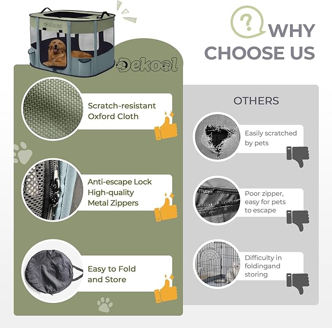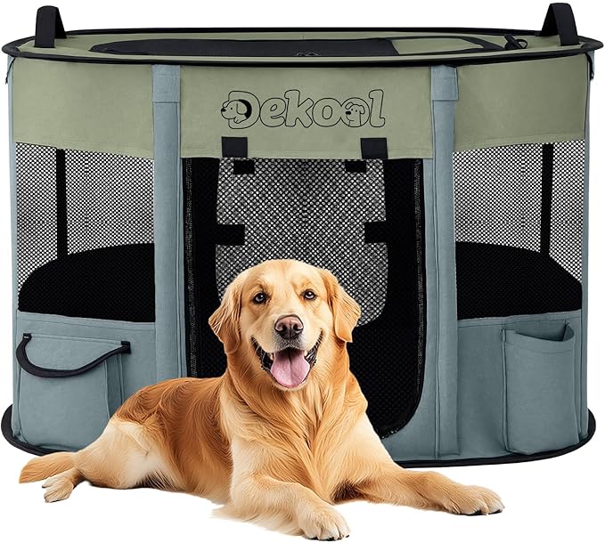 - 1. DEKOOL Portable Playpen:a portable, foldable dog cat playpen with secure anchor straps, smart storage, and dual lockable doors. Choose from multiple colors and sizes for the perfect fit.