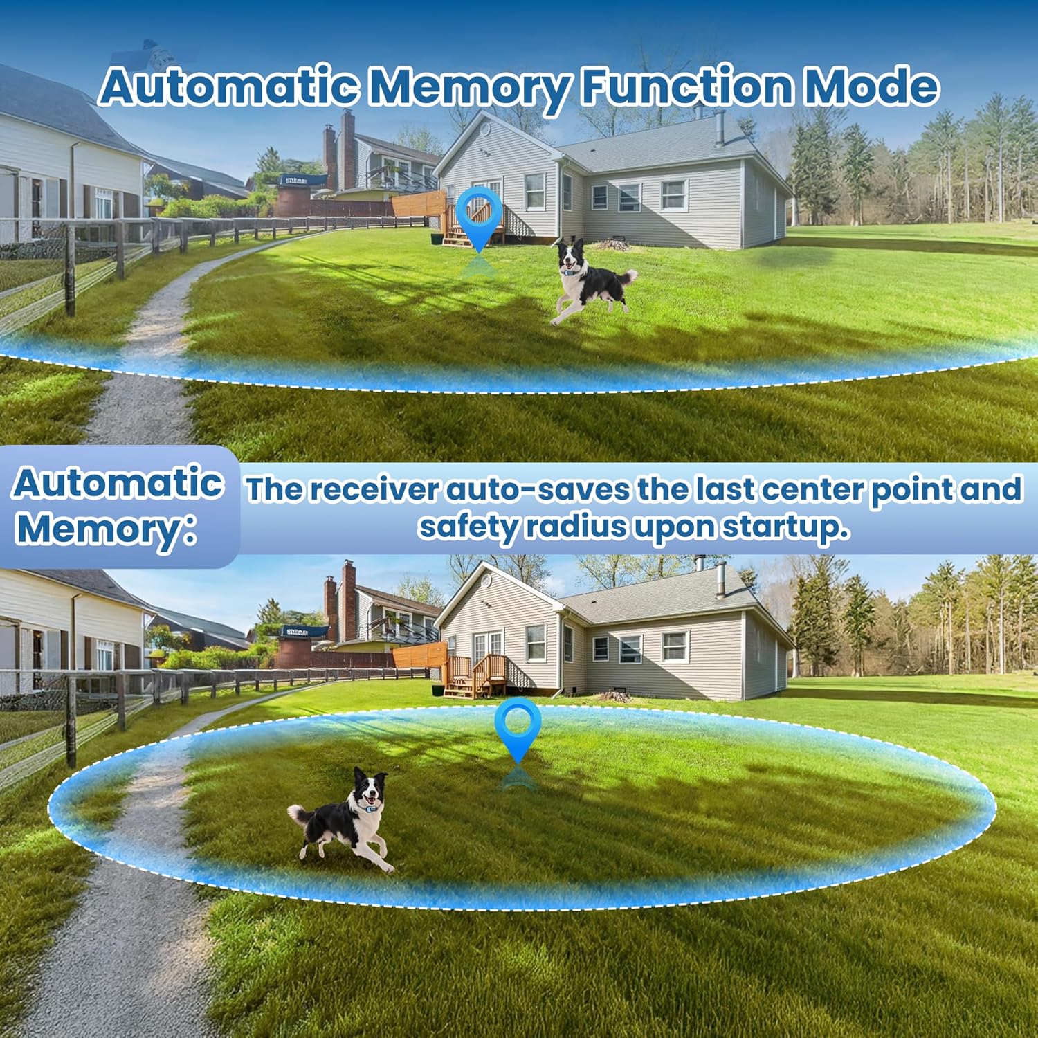 GPS-powered safe zone up to 6,561FT radius (3,104 acres). Your dog roams free โ you stay worry-free. One-time purchase, forever.